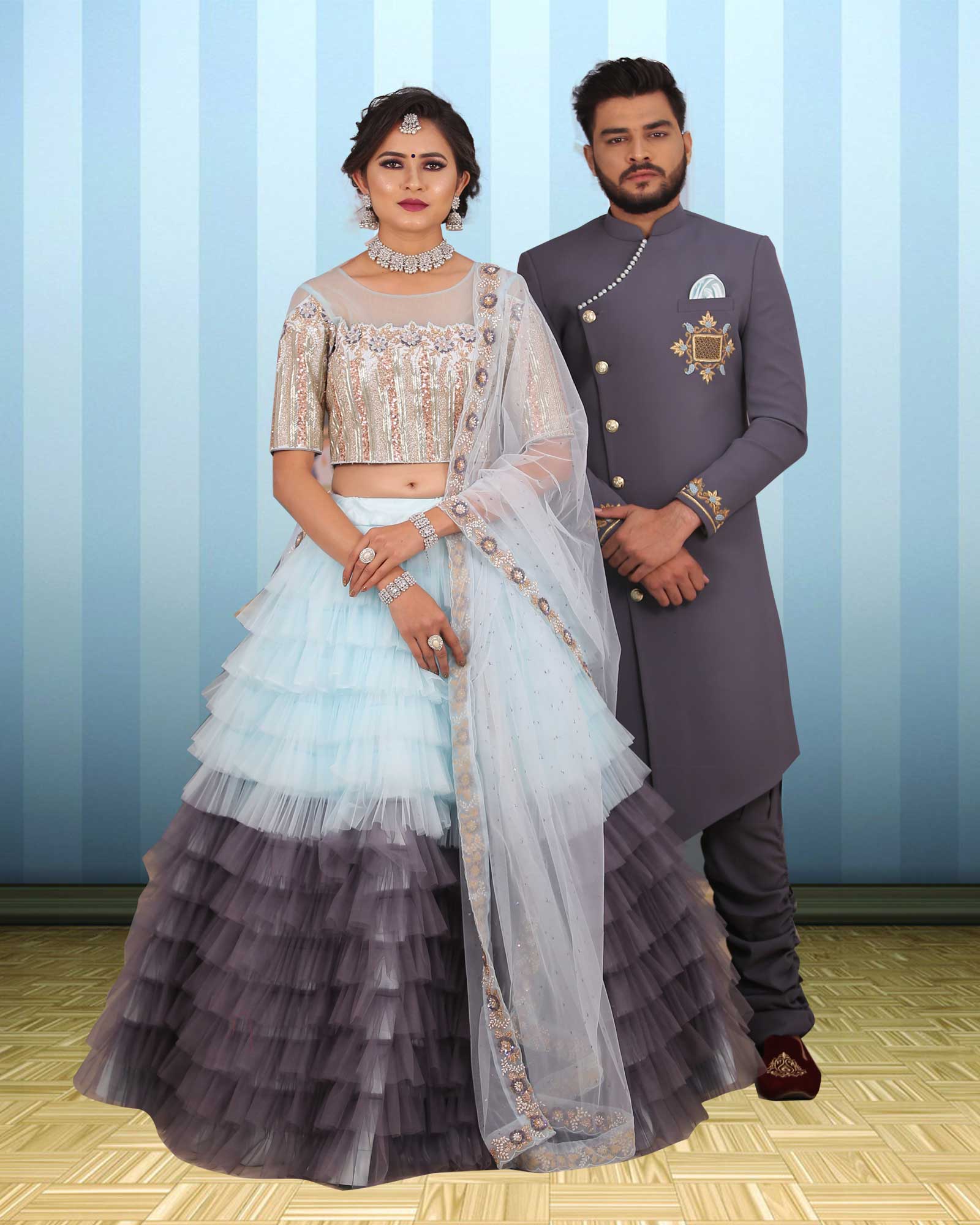 Grey Embellished Semi Stitched Lehenga & Choli with Dupatta