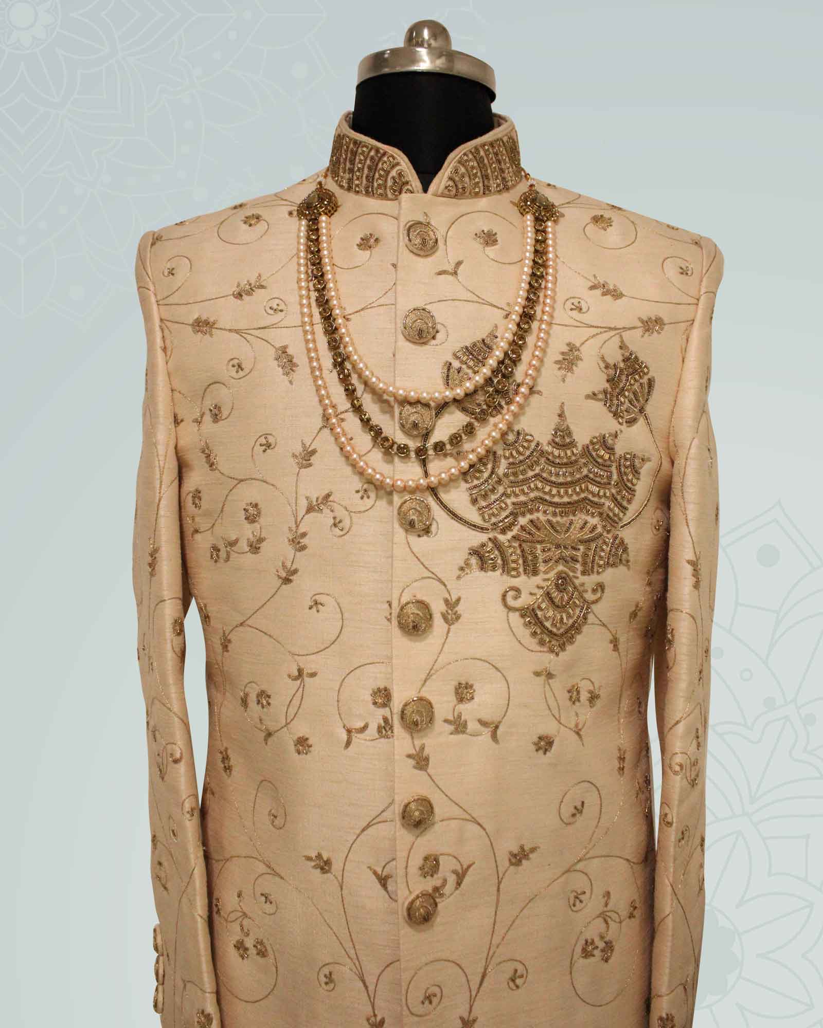 Butter Gold Zari & Resham Work Malbari Silk Sherwani E-1030
