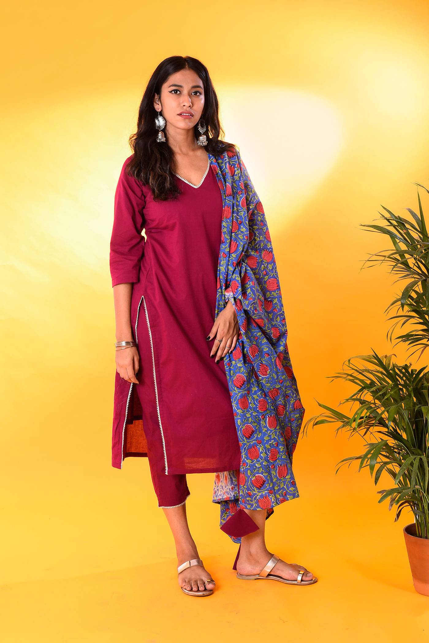 The delicate floral embroidery and fringe along with it simply make it classy to go with any ethnic attire .The small detailings on it make it look more modern and chic.