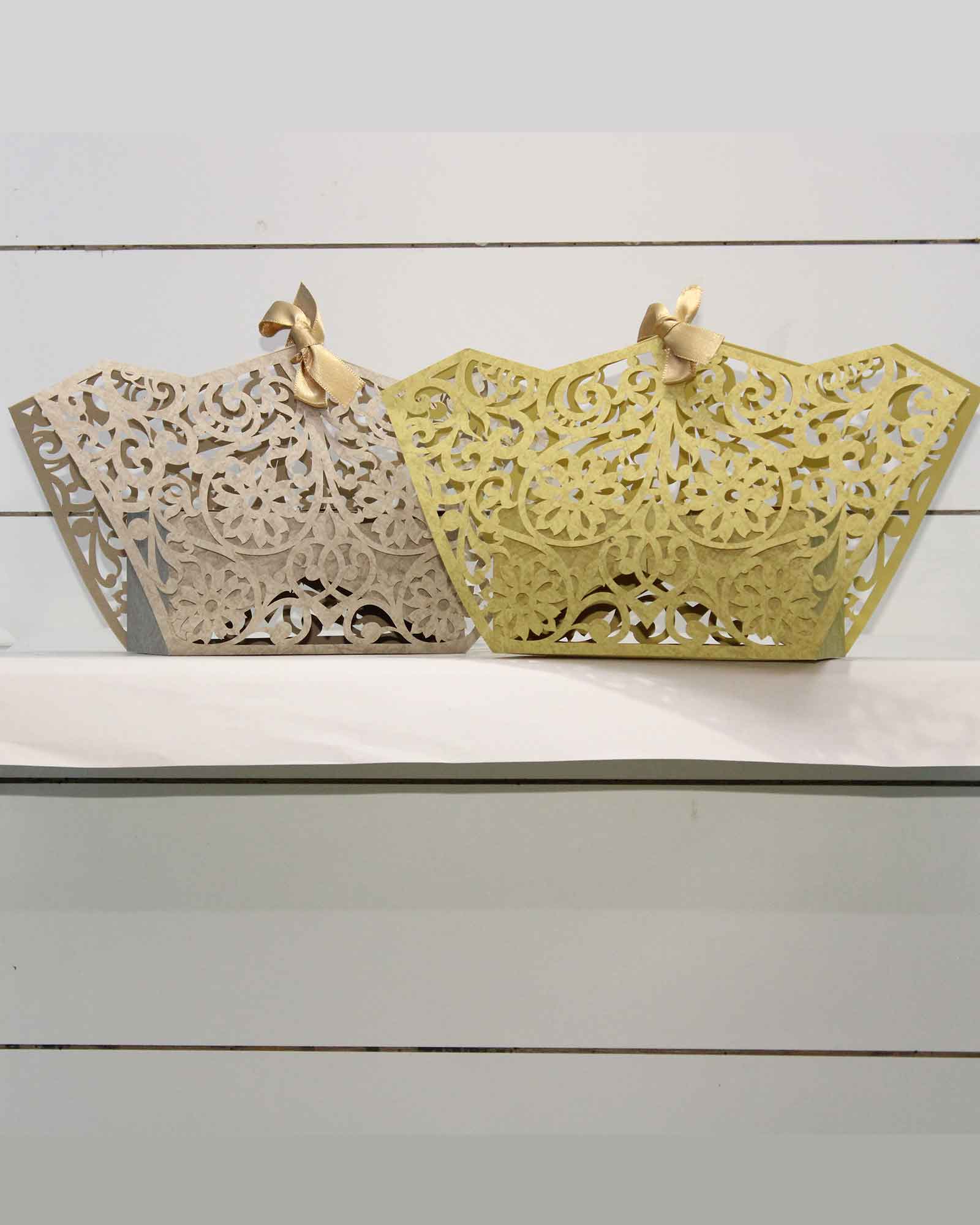 - Includes : favor box with lasercut designs.They are flat packed and easy to assemble
