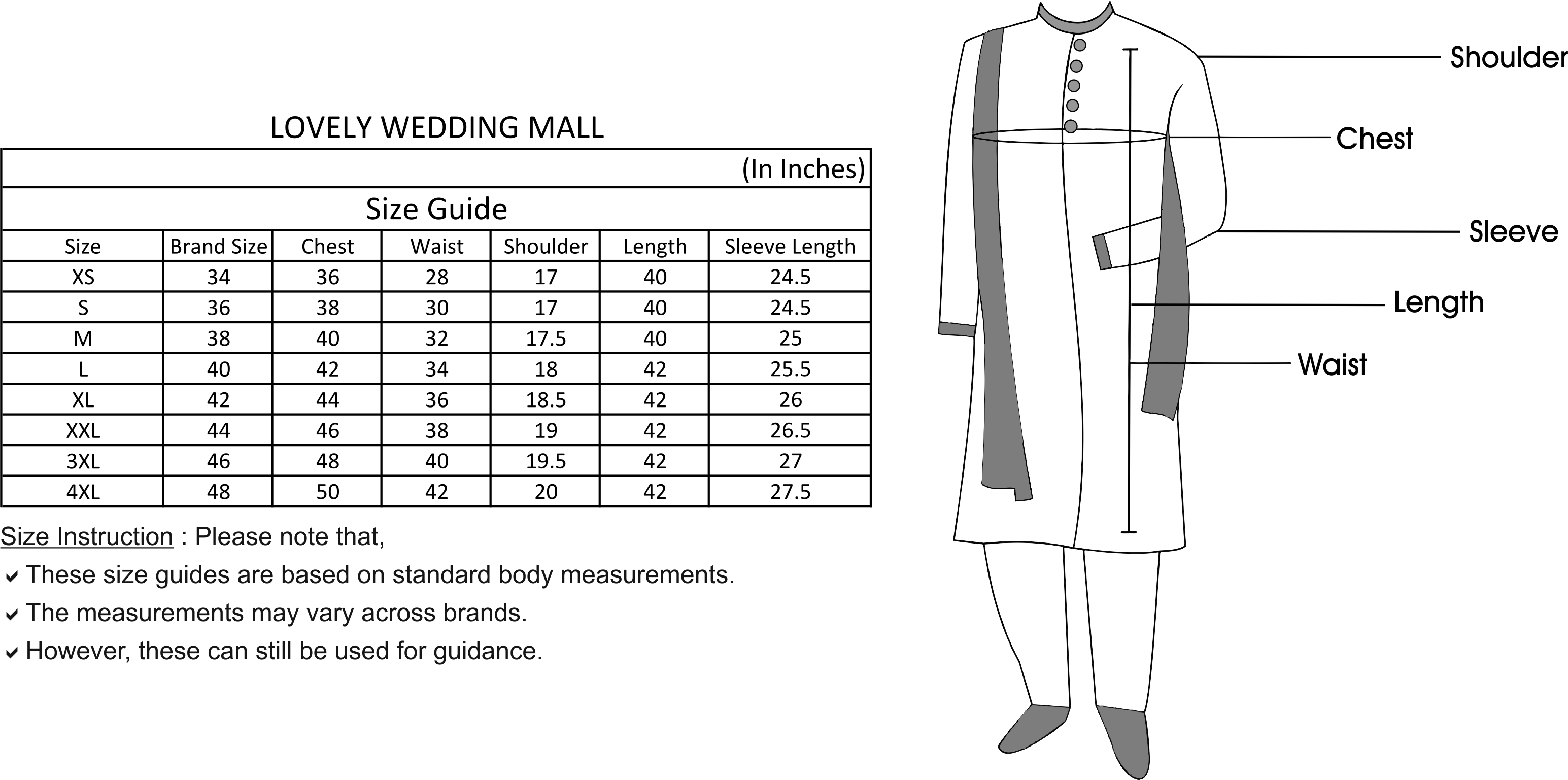 Stand confident and smart on your wedding day while you wear this Gold color sherwani which has embroidered with zari and Resham work all over sherwani is paired with a Maroon color churidar pant. Style the look by wearing a half-white color safa and layered chain to look elegant and smart. There might be a little color variation in the image and original product due to photographic lighting sources or your monitor settings.