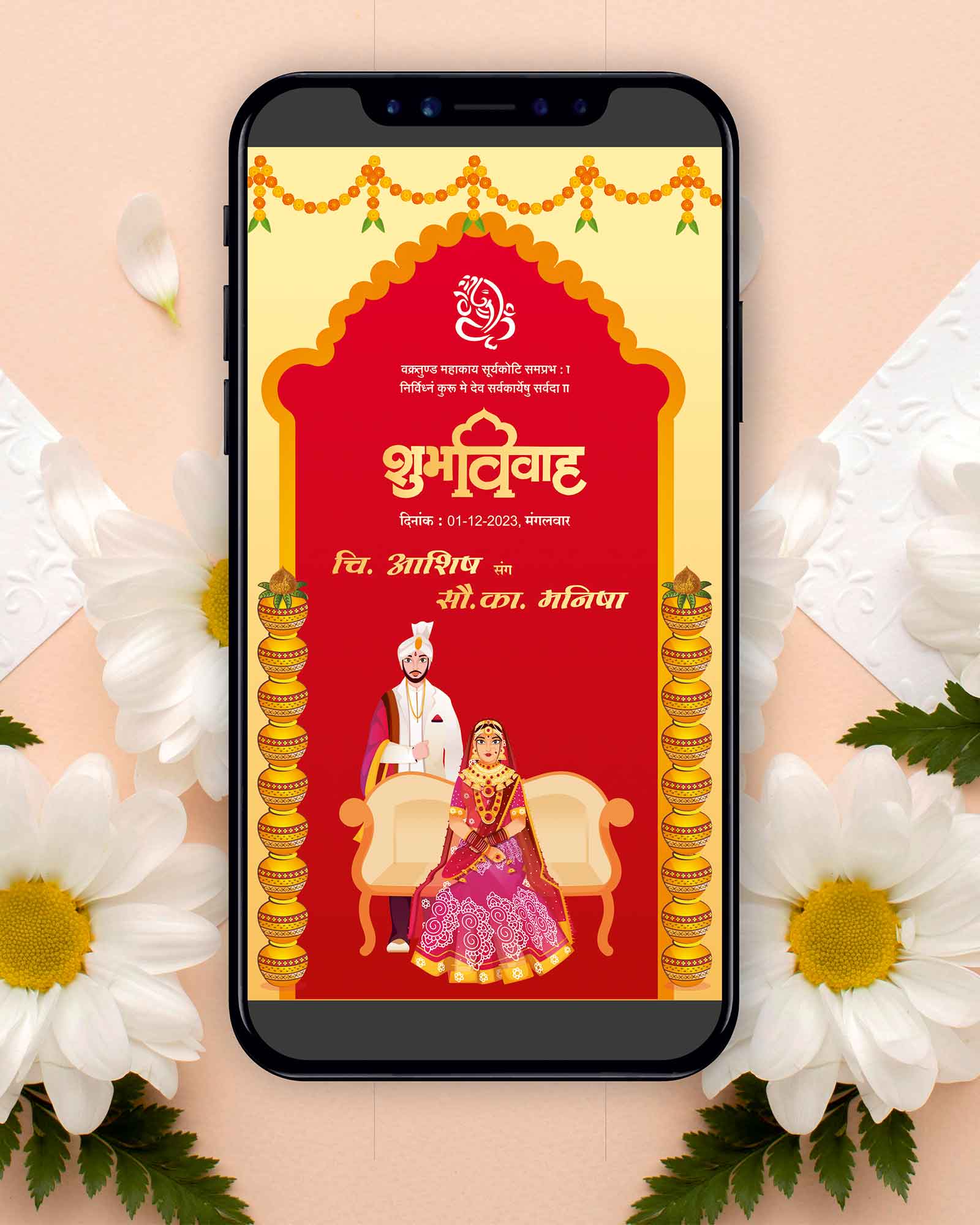 PDF Wedding Invitation / Engagement Ceremony E invite/ Roka Ceremony E invite in PDF format. Invite your near and dear ones with hassle free digital invites.