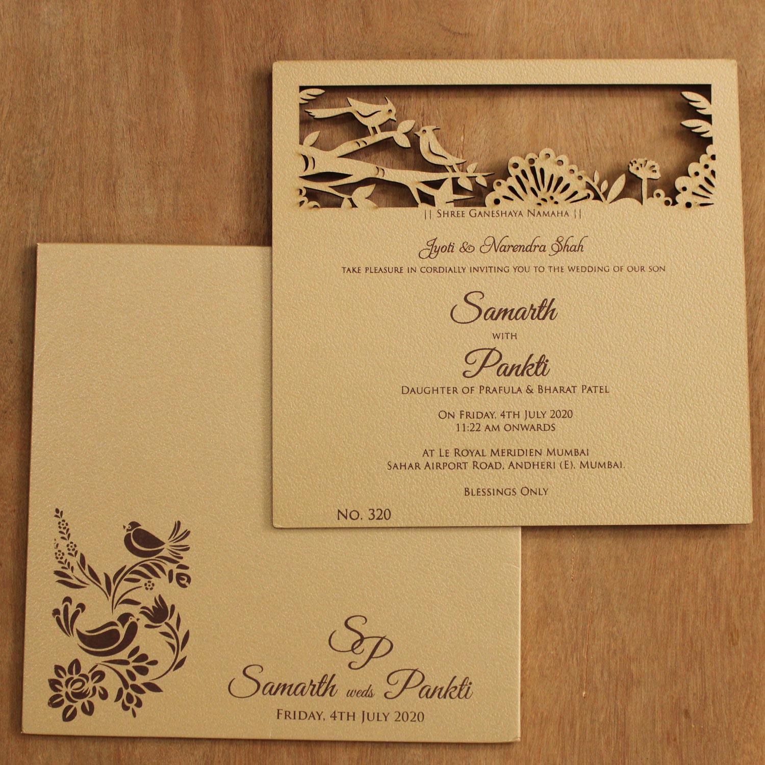 - Printing : you can opt for printing the price are for silk screen printing in single colour.we also provide Foil and Gloss Printing at extra cost.mail us your wordings at support@lovelyweddingmall.com